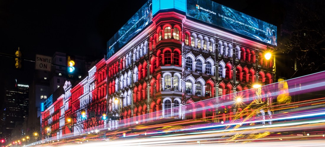 I chose a spot at the corner of William and Beaver Streets in Lower Manhattan right outside Delmonico’s facing 20 Exchange Place and pointed the camera up toward the sky.